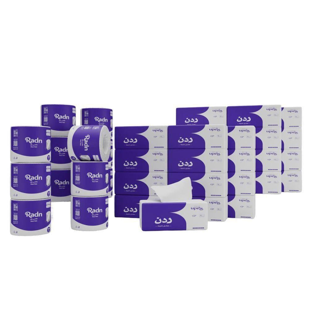- عدد العبوات: 32 عبوة من مناديل الوجه + 12 رول.